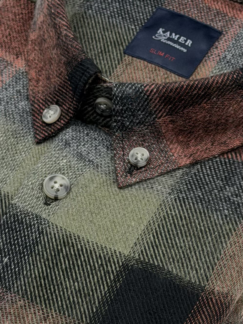 SLIM FIT KIŞLIK ÇİFT CEPLİ YEŞİL GÖMLEK